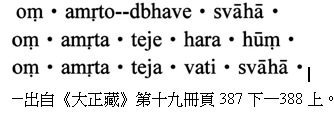(附,其它常诵字音:唵ong 普pu 隆long 娑suo 哈ha 唵ong 阿a 弥mi 达da 阿a 优you 达da 底di 娑suo 哈ha )