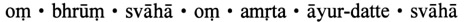 心咒:嗡 步噜母 梭哈,嗡 阿弥里达 阿瑜达得(dei) 梭哈。